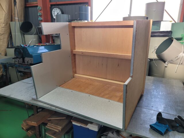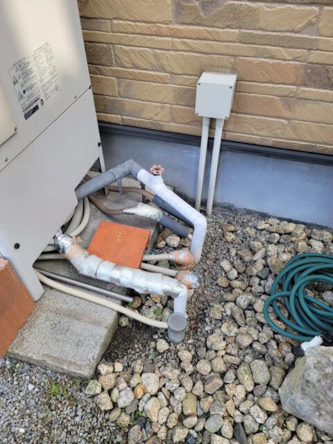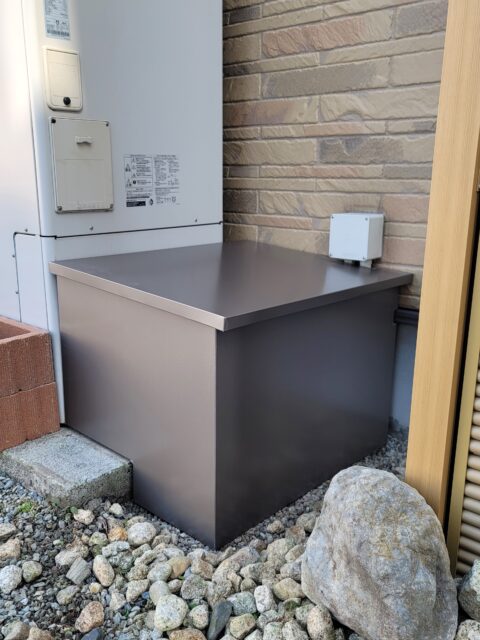 ”温水器の配管が凍る”との連絡が入り、急きょ配管カバーの制作です。