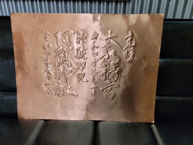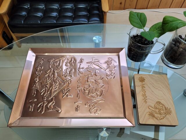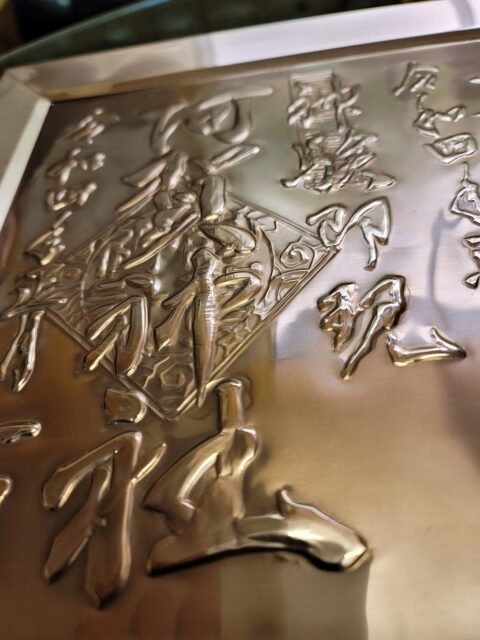 薄い銅板を裏から表から道具を使って押さえたものに、
